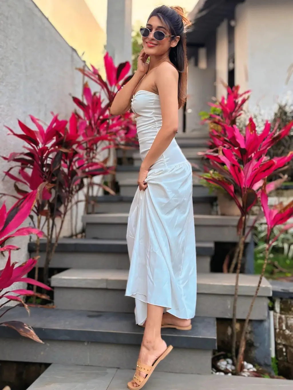 The dress is perfect! Even though it's strapless, it has silicone stitching inside that keeps it in place.