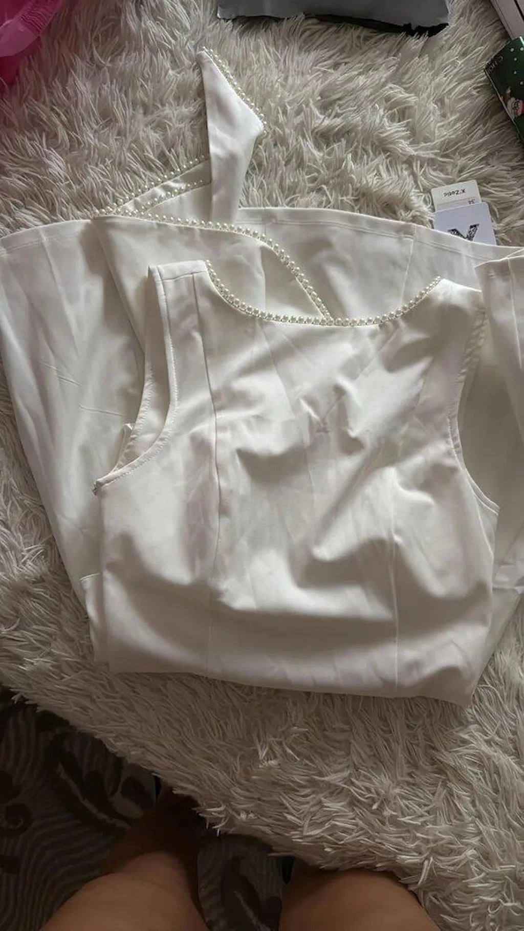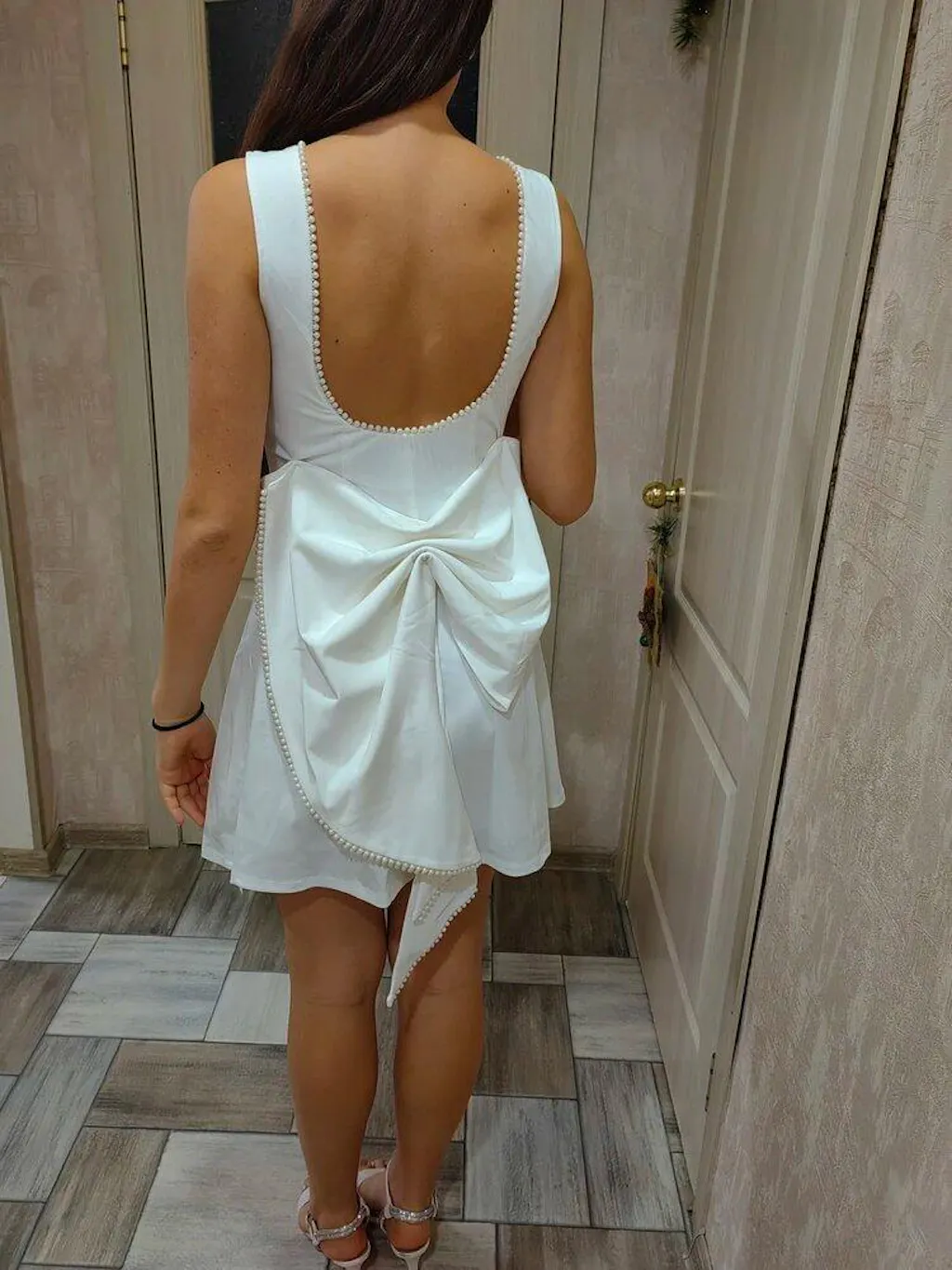 On a girl who is 175 cm tall and has a small bust, it's a delight. Delicate pearls. Elegant! I recommend it!