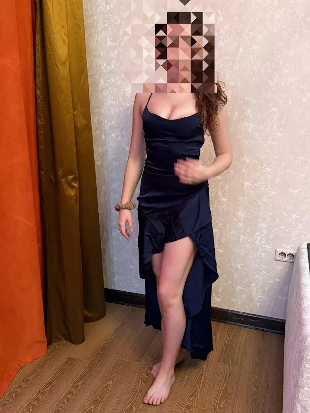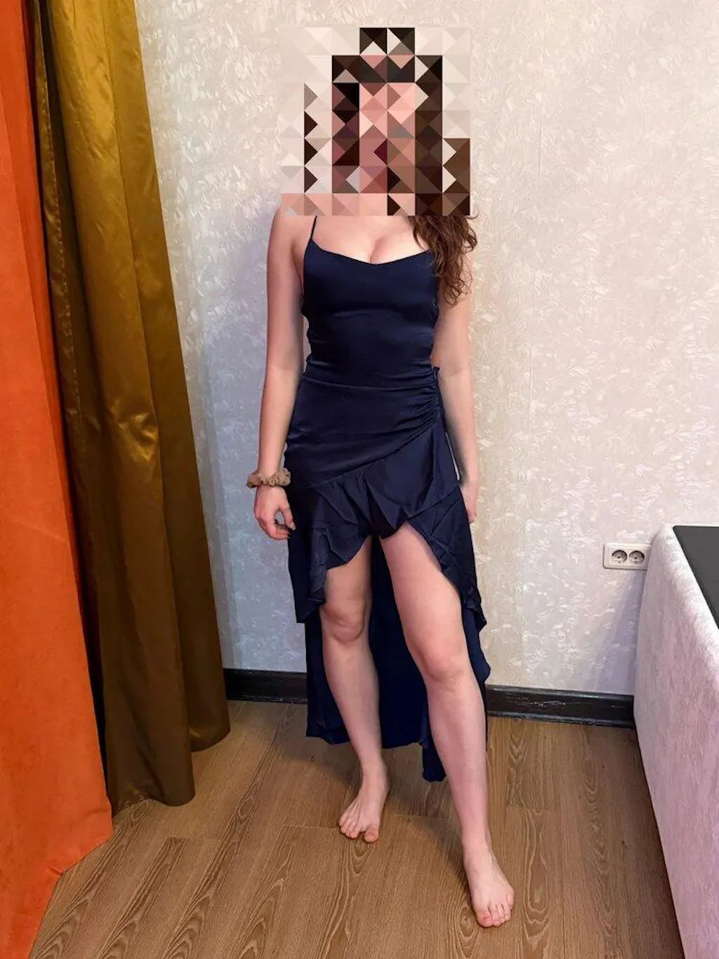 I liked the dress, the fabric is nice and flowy. I was expecting something worse, but the dress turned out to be very beautiful. There is one flaw, but it's not very noticeable: the cut on the side has gone slightly off, as if there wasn't enough fabric. And if you pull it too tight on the side, the fabric sticks out a bit at the corners of the waist. For a height of 167 cm (and size 42-44), size S fits well