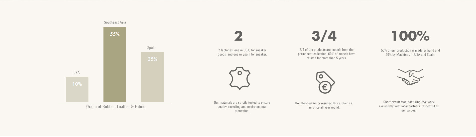 Our rubber is made exclusively from leather recovered from the rubber industry. We work exclusively with rubber mills in Southeast Asia. For each supplier, we will look for specific characteristics to ensure that the material chosen is suitable in all respects for the product we wish to produce. In addition to the quality aspect of our suppliers, we also select them for their ecological commitments. This is why we increasingly offer you a wide range of rubber and vegetable leather products, produced using less polluting and completely natural processes. Grain leather and certain of our leather sneaker items are supplied to you in this vegetable tanned state. Always look for opportunities